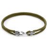 The Khaki Green Canterbury Silver and Rope Bracelet was both designed and skilfully handcrafted completely in Great Britain. Combining British craft manufacturing with a discerning modern-minimalist style, this ANCHOR & CREW bracelet features:
