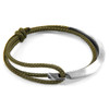 The Khaki Green Hove Silver and Rope Bracelet was both designed and skilfully handcrafted completely in Great Britain. Combining British craft manufacturing with a discerning modern-minimalist style, this ANCHOR & CREW bracelet features: