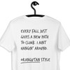 • Coloured 'Every fall just gives a new path to climb. I ain't hangin' around. Orangutan style' large font aspirations motif on back with matching embroidered orangutan and collaboration inside label. May the orangutan go forth and inspire...